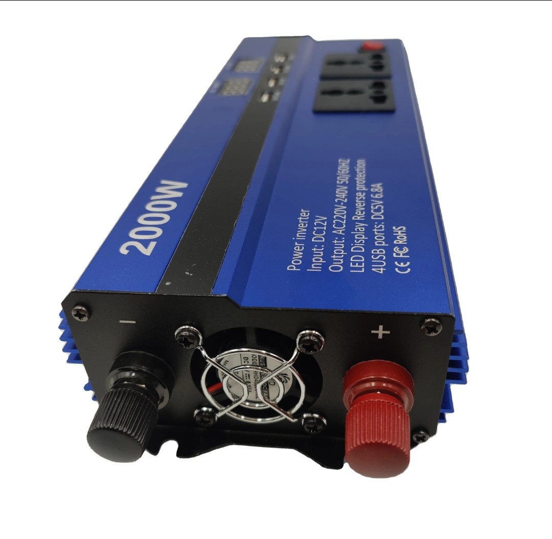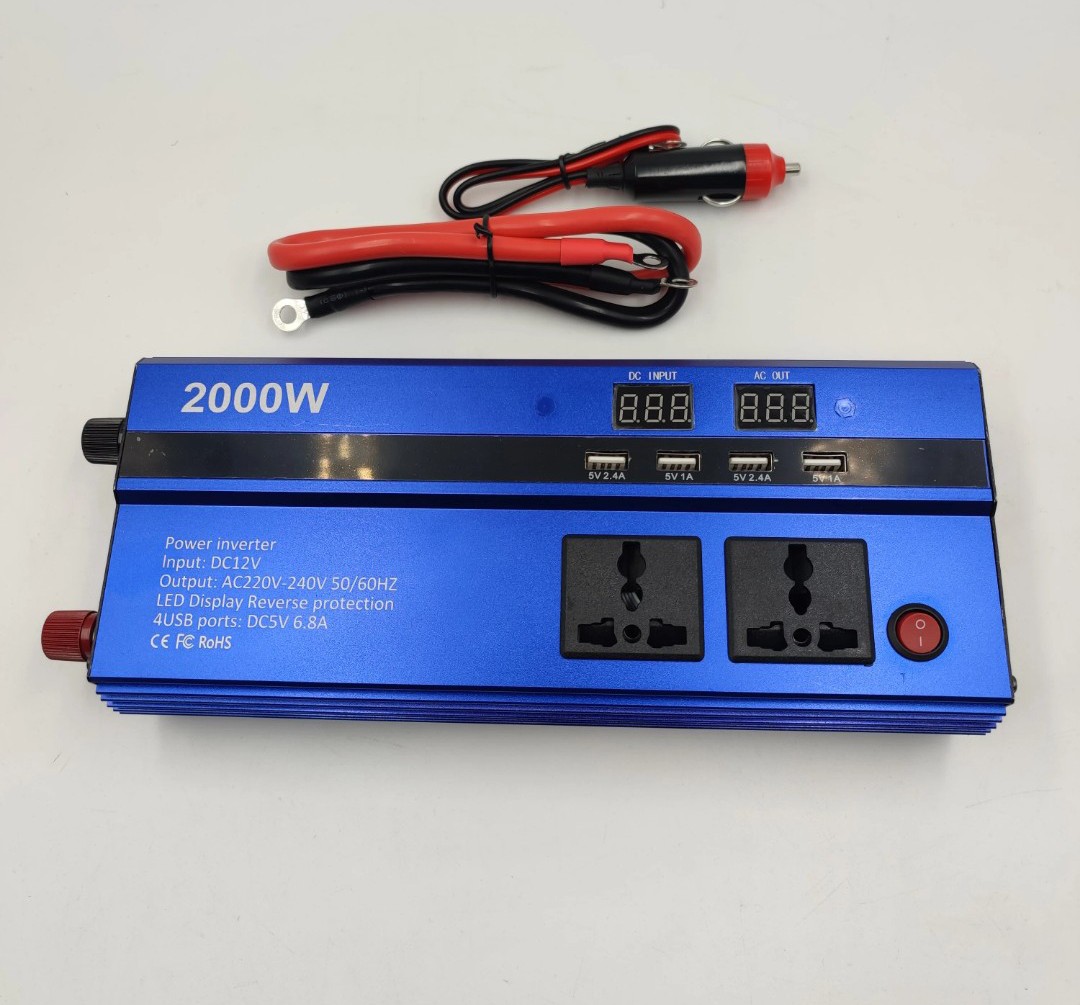 Power Inverter – Onduleur Convertisseur 2000W 12V/220V USB avec écran LCD. Protection contre les courts-circuits, les surcharges, les surtensions et les surchauffes.